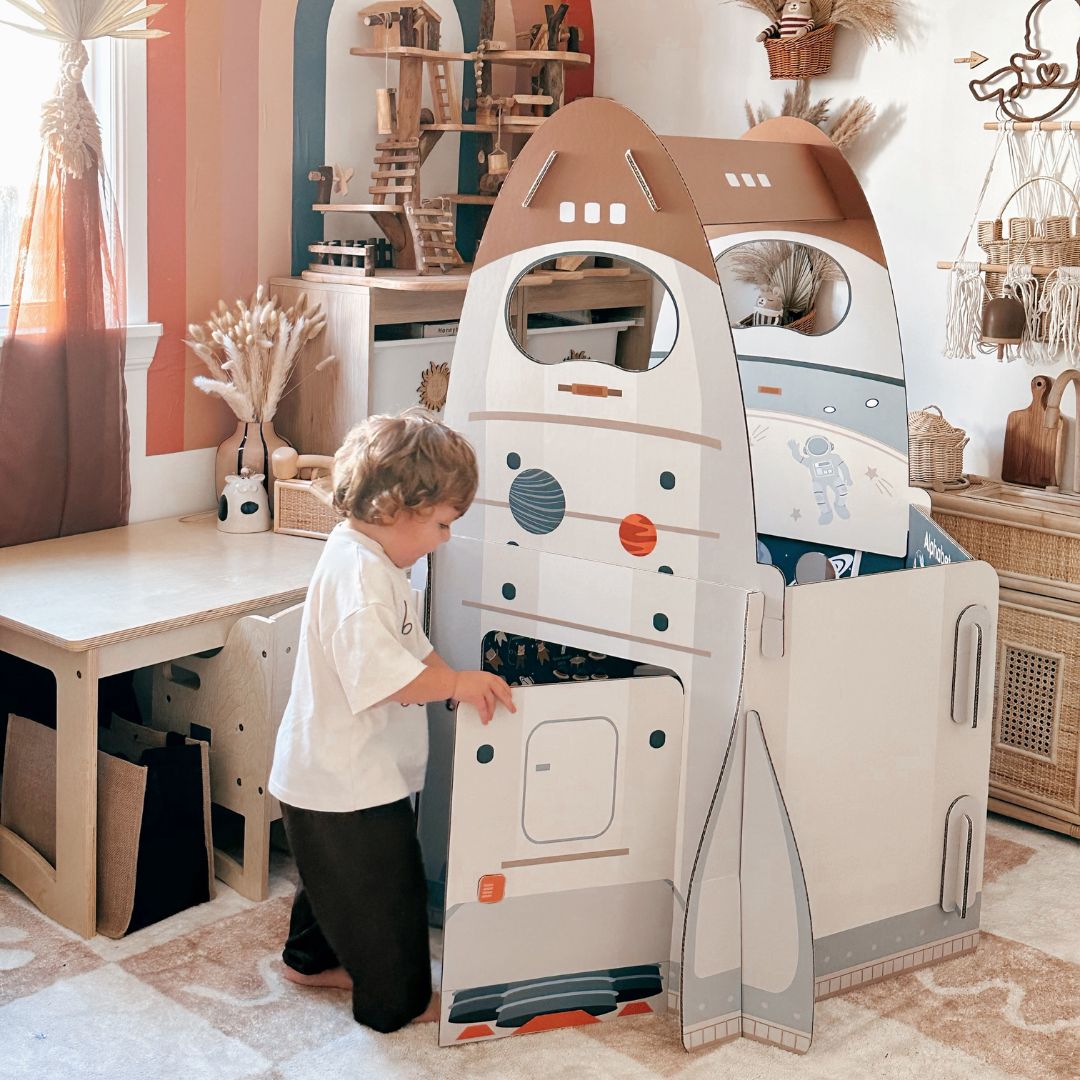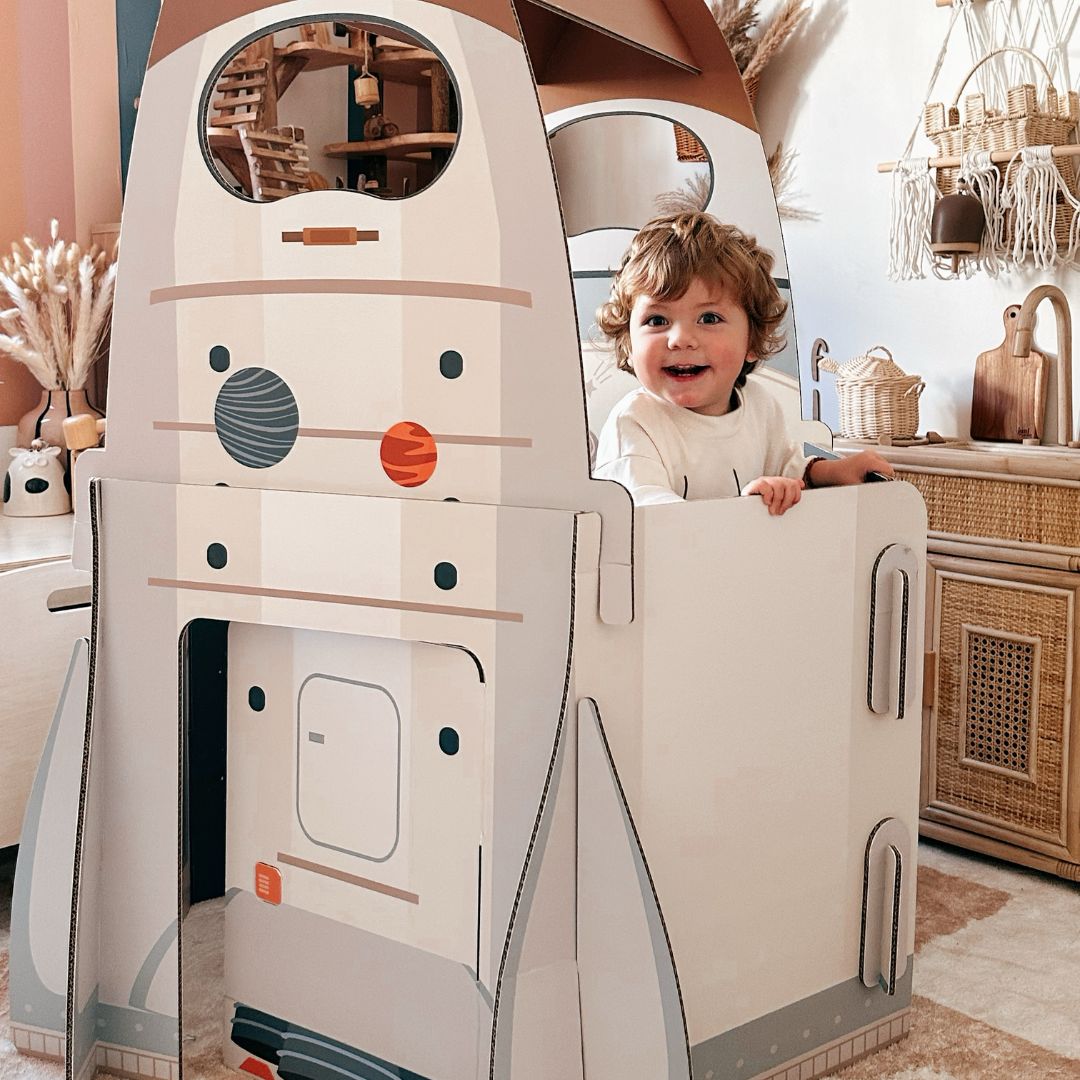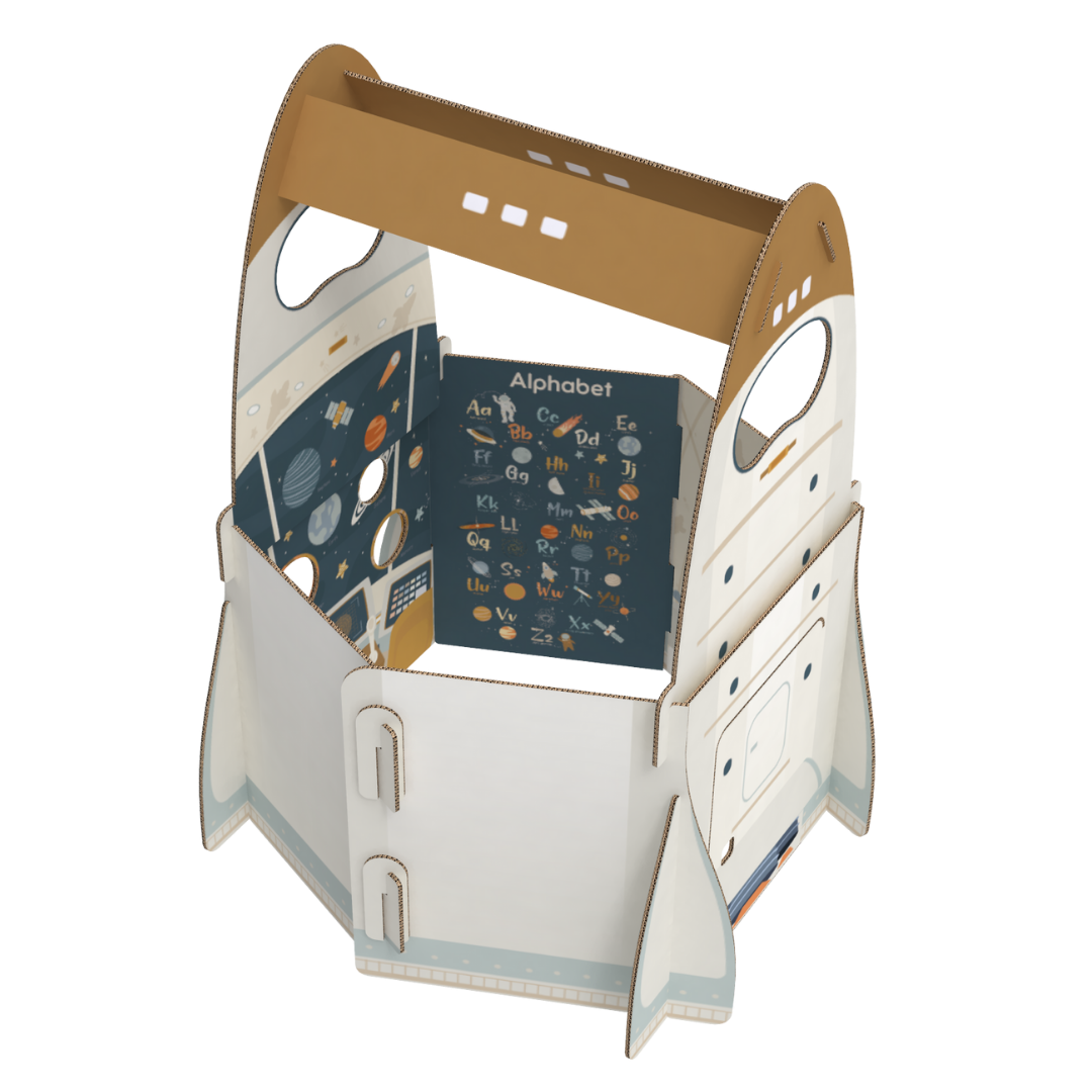 Paper Pops' Cardboard Cubbies are fold-out cardboard playhouses designed for big imagination and screen-free fun. From castles to space shuttles, each cubby includes interactive learning panels and playful activities that inspire creative play at home or in the classroom. Eco-friendly, flat-packed, and ready for adventure!