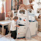 Prepare for launch – the Space Shuttle Playscreen is ready for takeoff! Designed for curious little astronauts, this fold-out cardboard panel transforms any room into a mission-ready cockpit. From learning your ABCs to landing on new planets, every detail invites discovery. Spot tools in the space lab, stock the galley, master the planets, and take aim at the control panel bean bag toss. Whether it’s solo space training or sibling crew adventures, the stars are just the beginning.